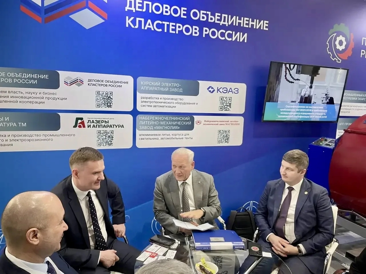 В рамках форума представлена экспозиция Делового объединения кластеров России (павильон 2, стенд D1‑1), где компании ИБММ Технологии, КЭАЗ, Лазеры и аппаратура ТМ, Подольский завод специальных кабелей, Набережночелнинский литейно‑механический завод «Магнолия», НПП ПРОМА, Питон Кама и Техникс представляют свою передовую продукцию, демонстрируя высокий уровень инноваций и технологической мощи.