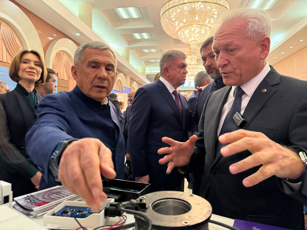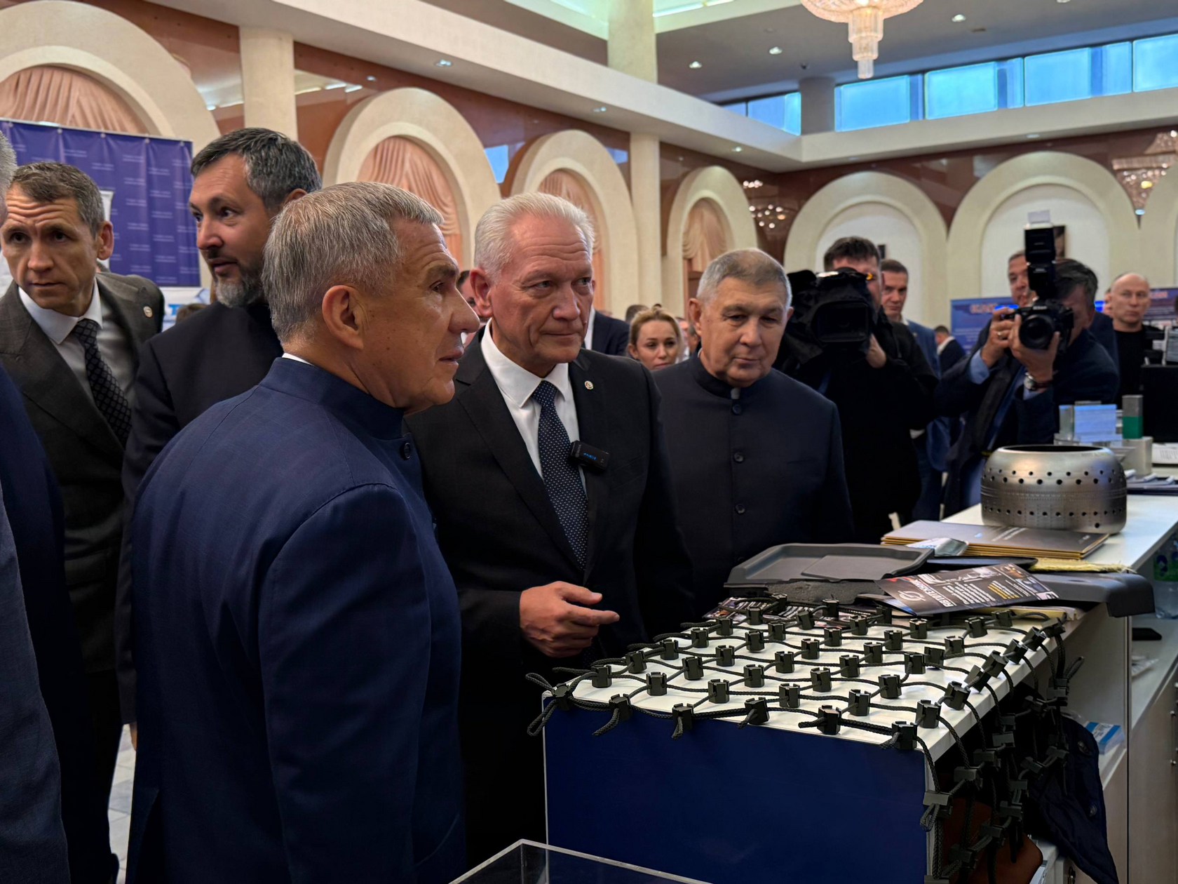 🚗⚙️Перед торжественной частью гости осмотрели масштабную выставку достижений и разработок, в которой приняли 8 компаний отраслевого комитета «Автомобилестроение» Делового объединения кластеров России: «Кама» (Атом), «ЭКОПРОМ-НЧ», «Завод фильтров Седан», Кориб, «НПП РИСАЛ», «НЛМЗ Магнолия-С», РариТЭК и «ПКФ «Автокомпоненты-Трейд». Также свою продукцию представили компании Промкластера Татарстана: Елабужский аккумуляторный завод, «Питон Кама», «Сатурн», «АВТОТЕХНИК», ЗГО, ПКФ Универсал. С ней гостей ознакомил председатель правления Делового объединения кластеров России, Промышленного кластера РТ Сергей Майоров.