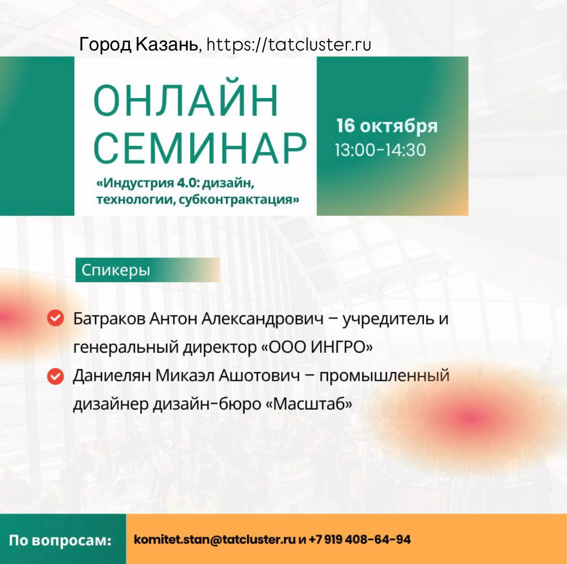 📞 +7 (965) 611-08-19, gabitova.n@tatcluster.ru (куратор Проектного офиса Промкластера Татарстана Надежда Федоровна Габитова)